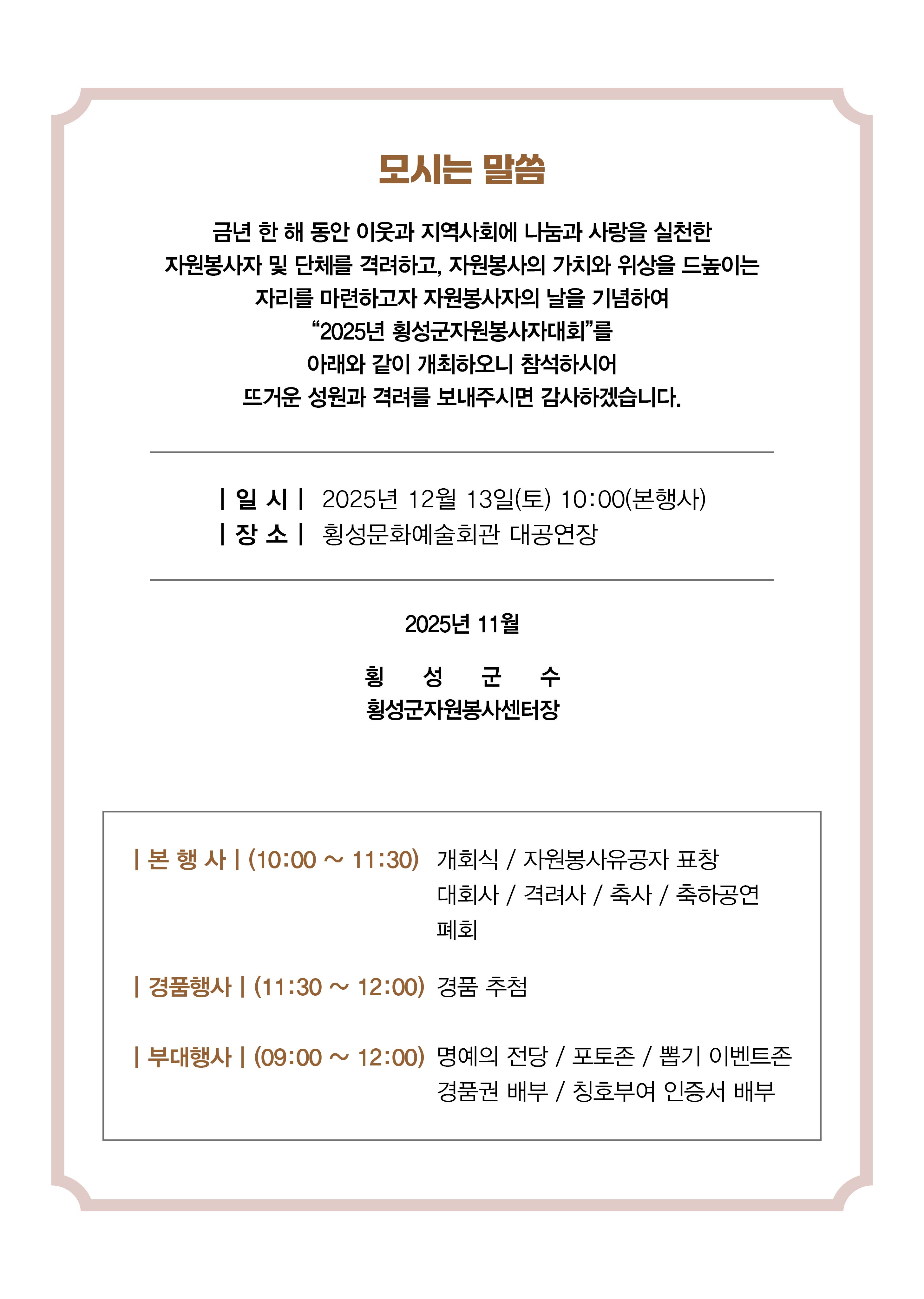 [공지] 2025년 횡성군자원봉사자대회 개최 알림